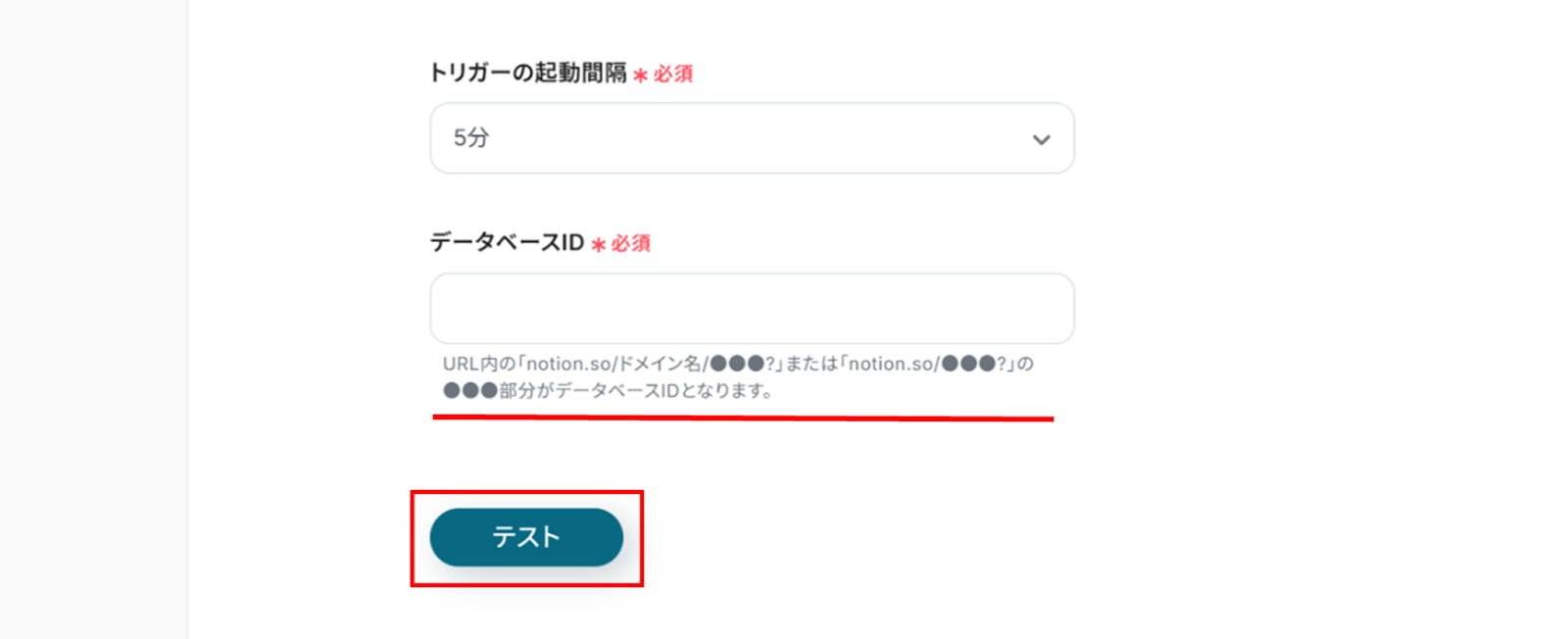 下へ進み、赤線を確認の上、データベースIDを入力します。