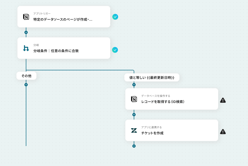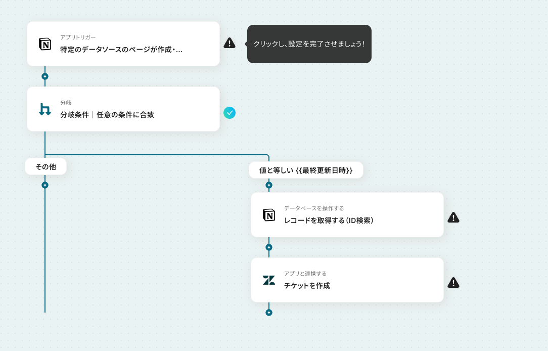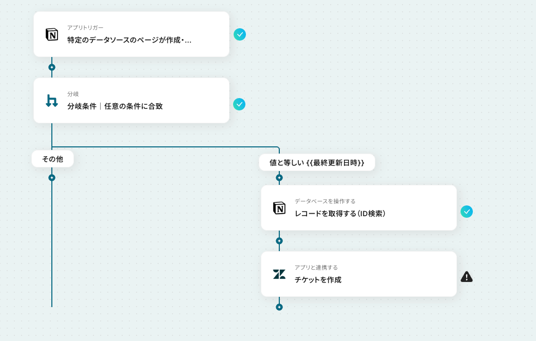 これで、Notionにページが作成されたら、Zendeskに自動でチケットを作成できます。
