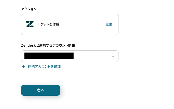 - 最後に、オペレーションでZendeskの「チケットを作成」アクションを設定し、取得した情報をもとにチケットを作成します