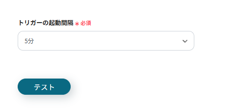 「トリガーの起動間隔」は5分、10分、15分、30分、60分の間隔で起動間隔を選択できます。