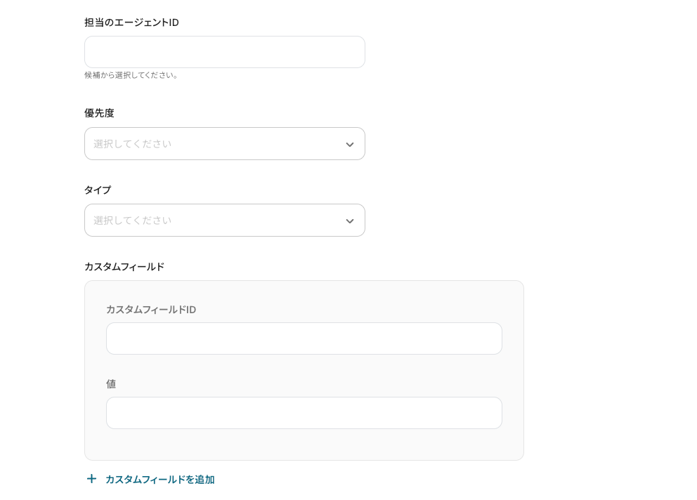 - Notionにレコードを追加するオペレーションでは、連携先のデータベースや各フィールドに設定する値を任意で設定できます。Zendeskから取得したチケットの件名や内容、担当者情報などをNotionの各項目に自由に割り当てることが可能です。