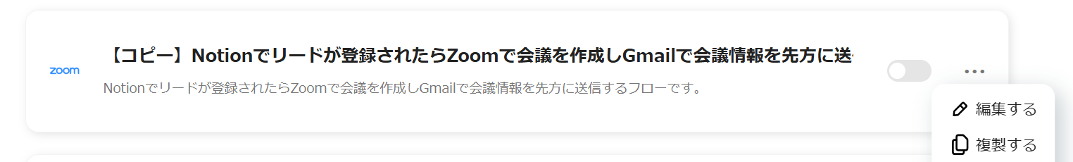 マイアプリ登録が完了したあと、「Notionでリードが登録されたらZoomで会議を作成しGmailで会議情報を先方に送信する」フローボットを作成していきます。