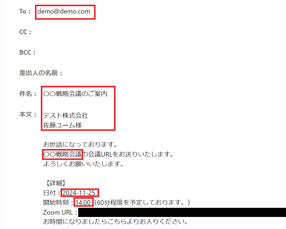 (この際のテストでは実際にメールが送信されます。動作を試す際には「To」に自身のメールアドレスなどを設定した上でテストを行なってください。)