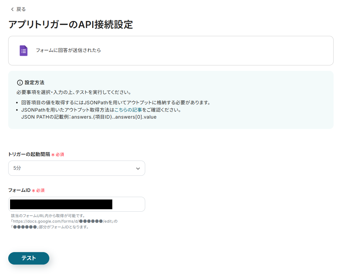 フォームIDを入力したら、Googleフォームで回答を送信してください。