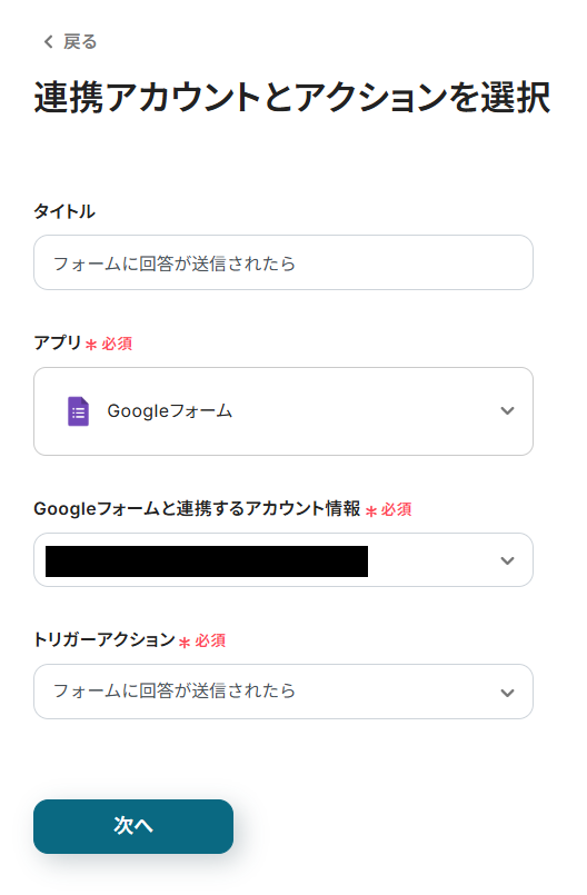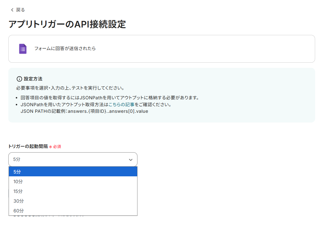 ここで設定した時間間隔ごとに1度、フォームに回答が送信されたかを確認します。
