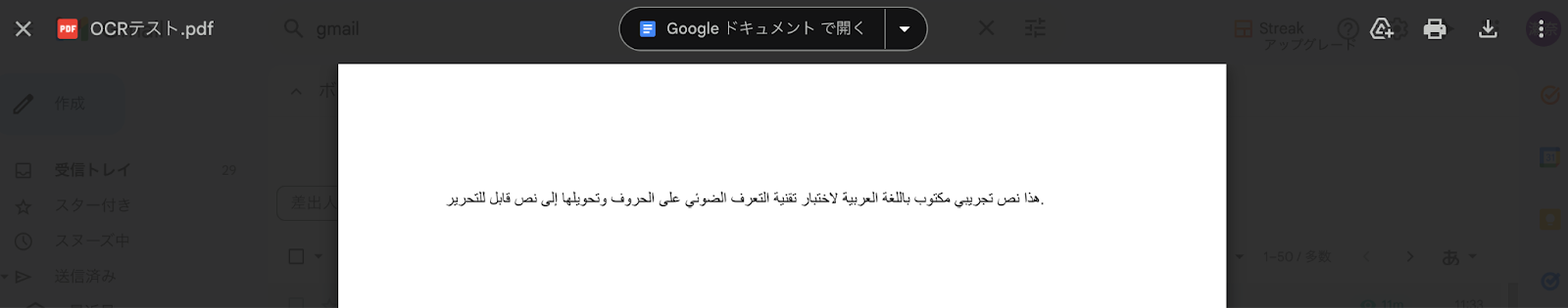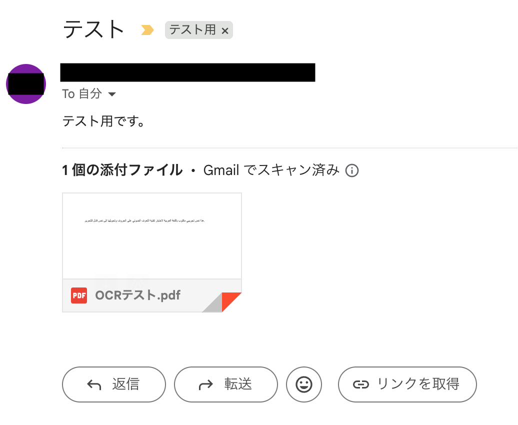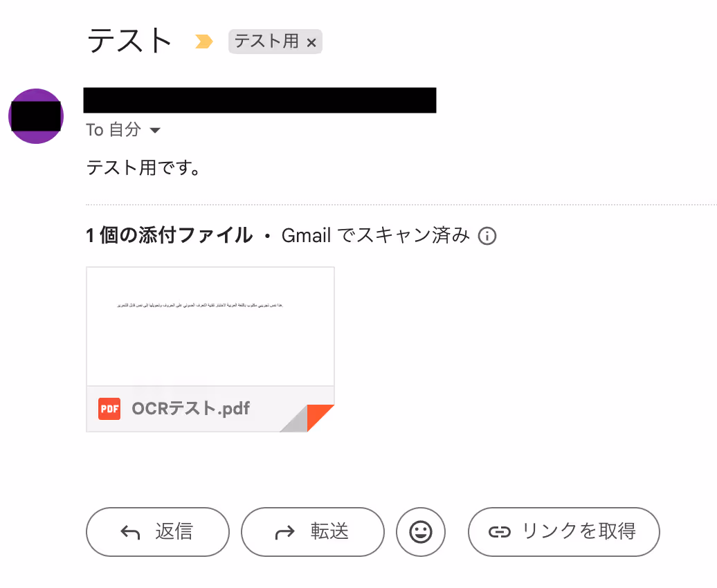 実際にアラビア語のファイルをメールで受信し、OCRによってテキストが正しく読み取られるかを確認してみましょう。