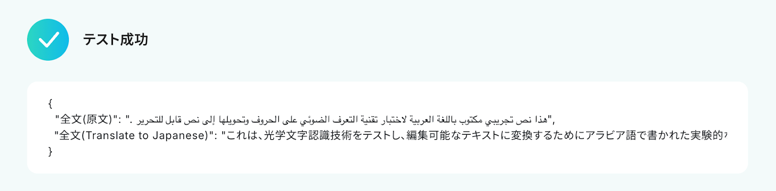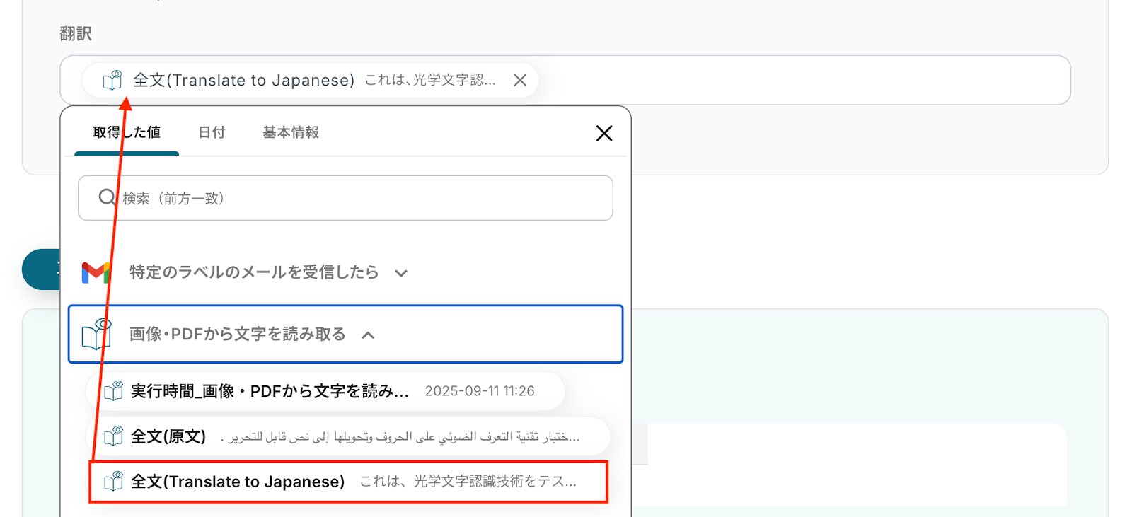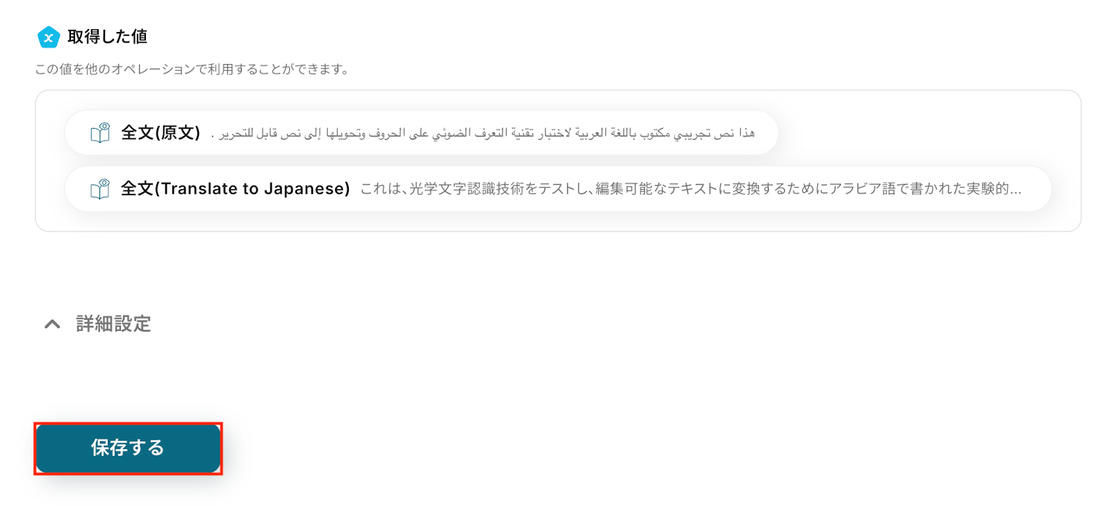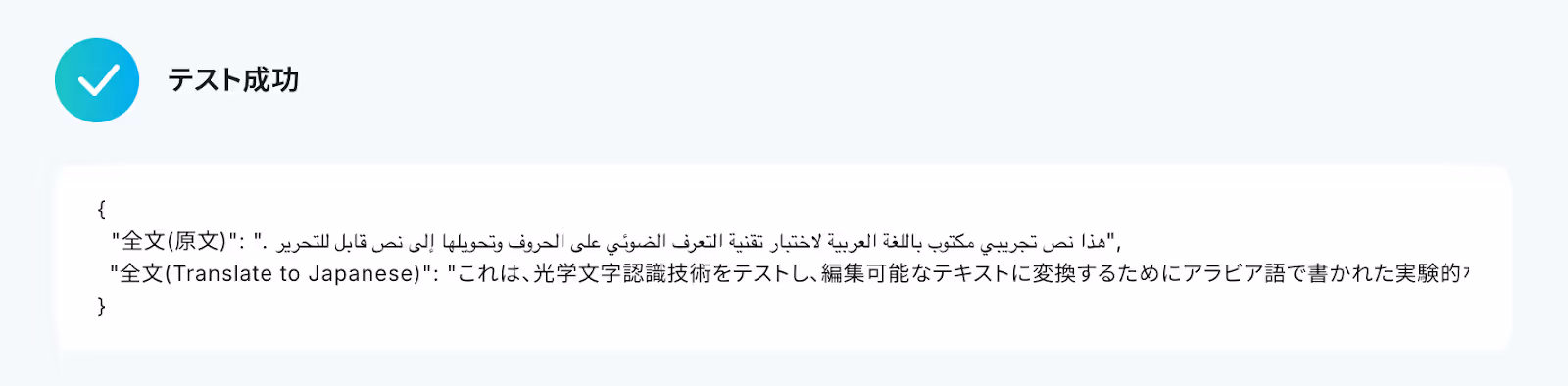 トリガーをONにすることで、Gmailでアラビア語ファイルを受信したタイミングで、自動的にOCR処理が実行されテキストが抽出されるようになります。