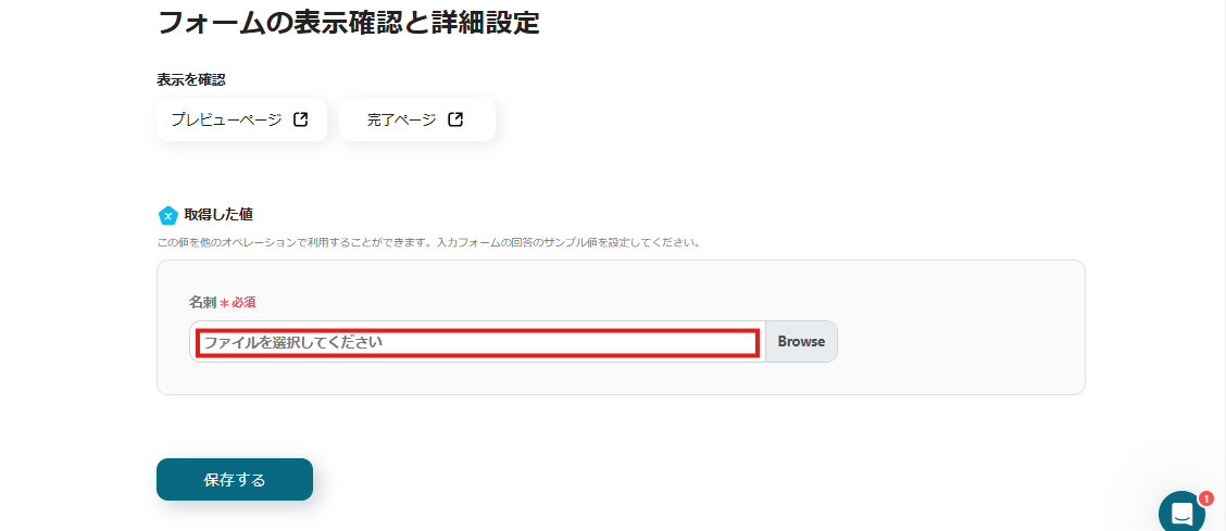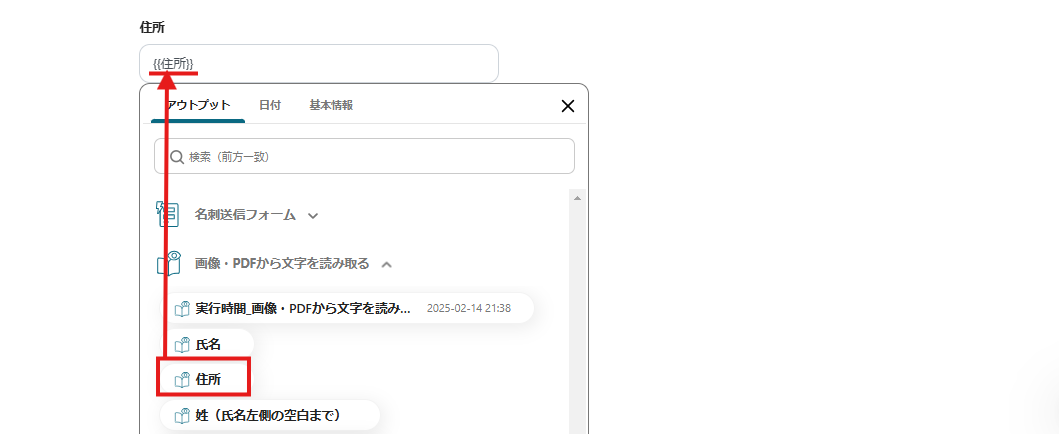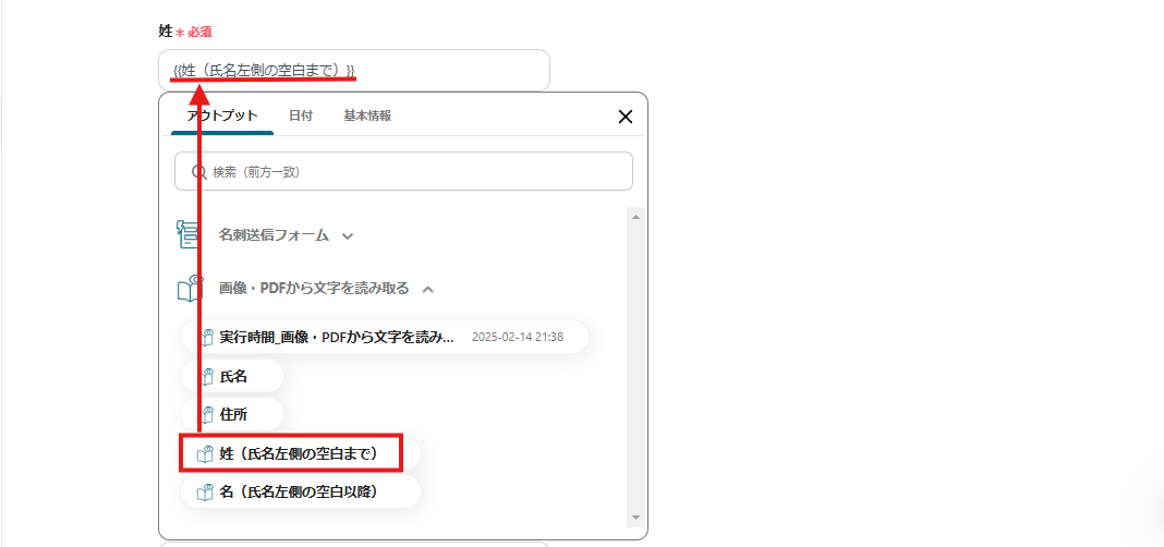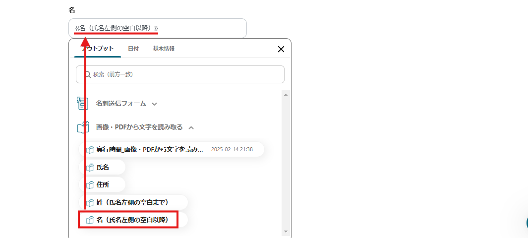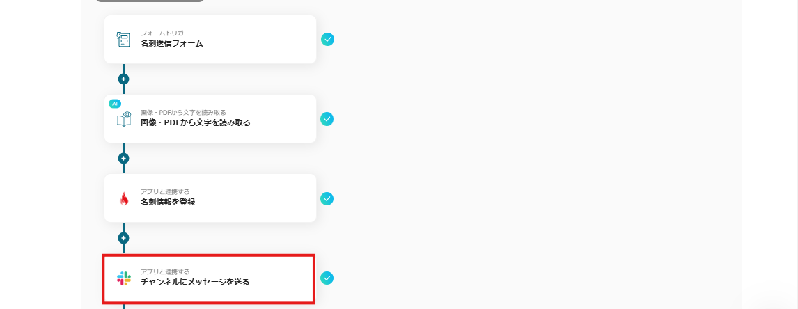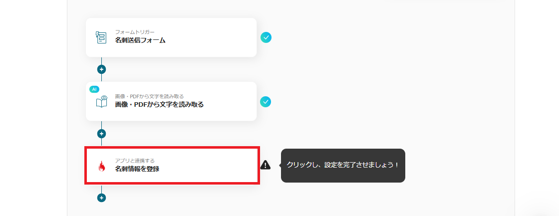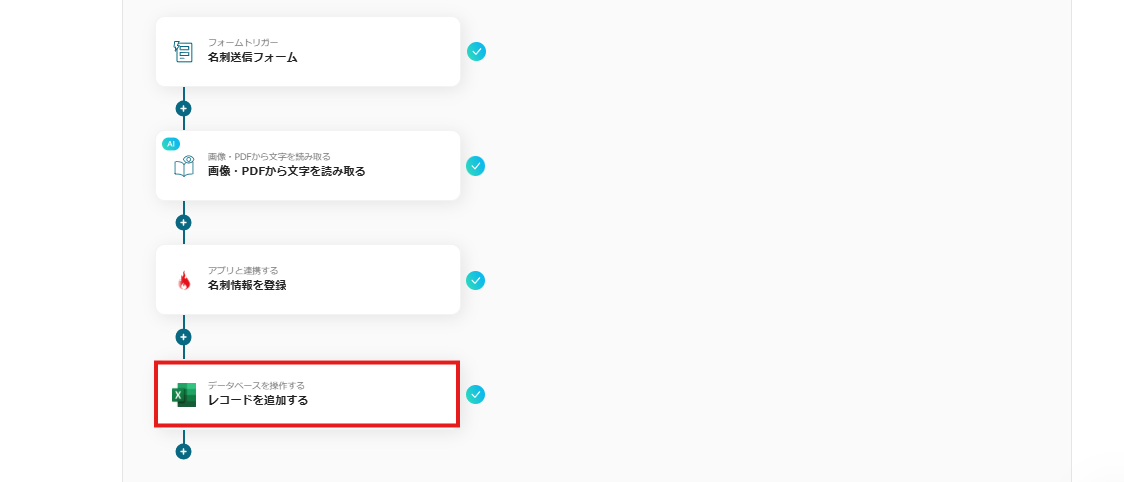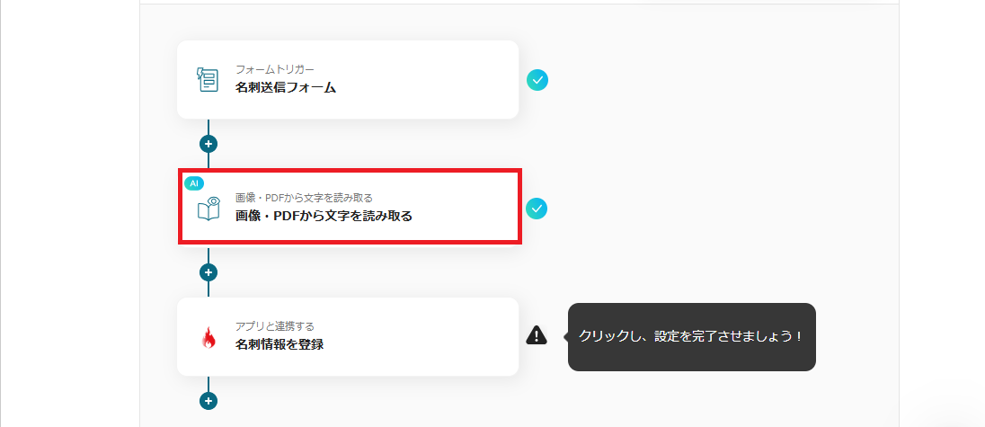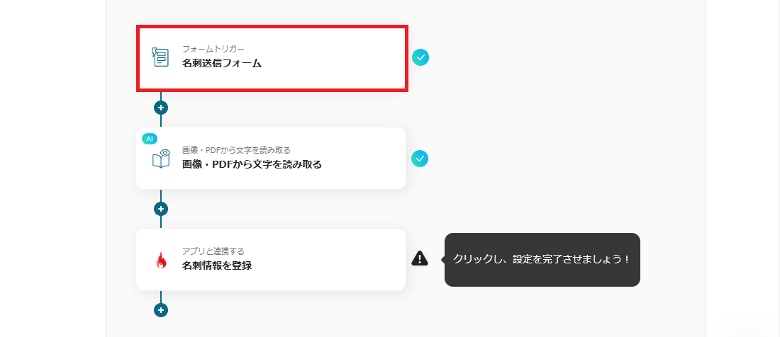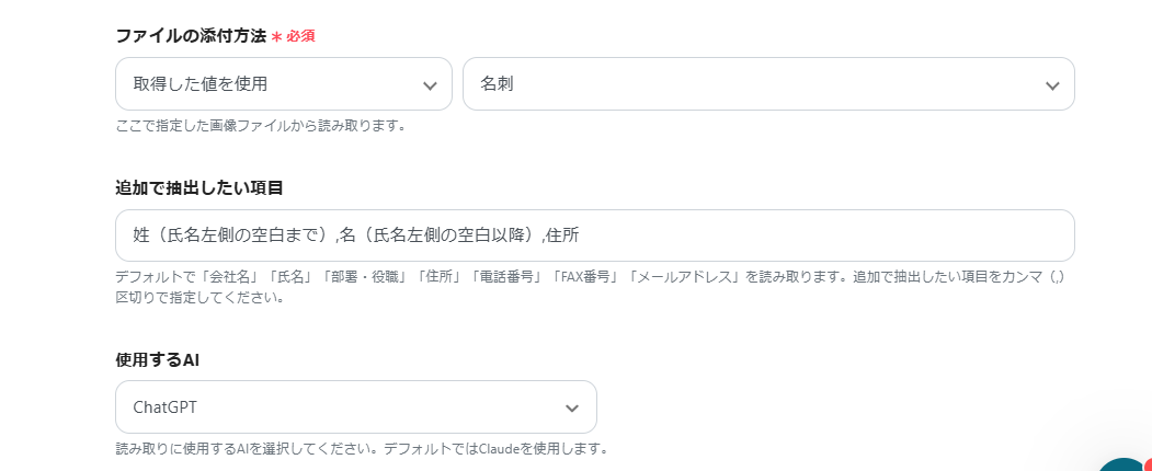このように設定することで、名刺画像がフォームで送信されたらOCRで必要項目を自動抽出できます。