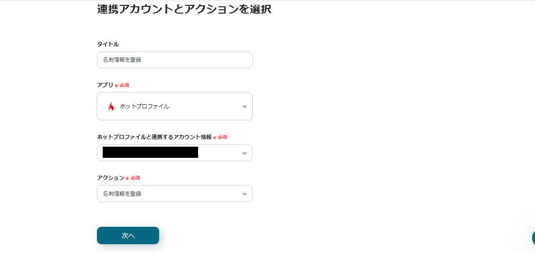 「名刺情報を登録」の下にある「+」をクリックすることで、アクションを追加することができます。