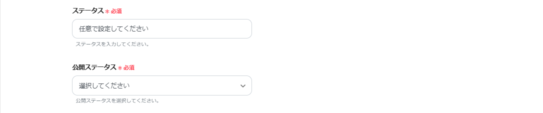 ステータスは、枠内をクリックし表示される候補より選択してください。