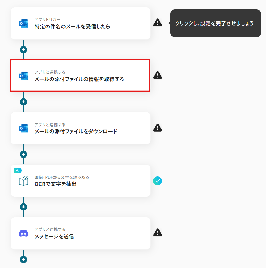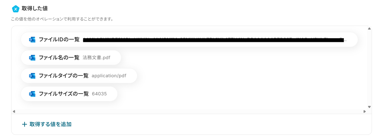 ステップ4:Outlookの添付ファイルの情報取得設定