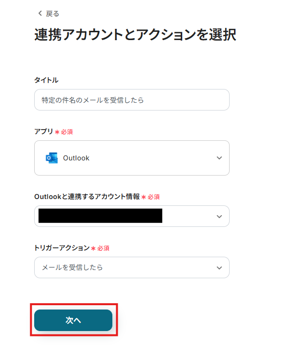 ステップ3:Outlookのトリガー設定