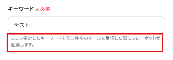「キーワード」は、入力欄下の注釈に沿って、入力してください。