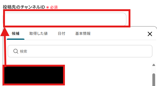 「投稿先のチャンネルID」を候補から選択してください。