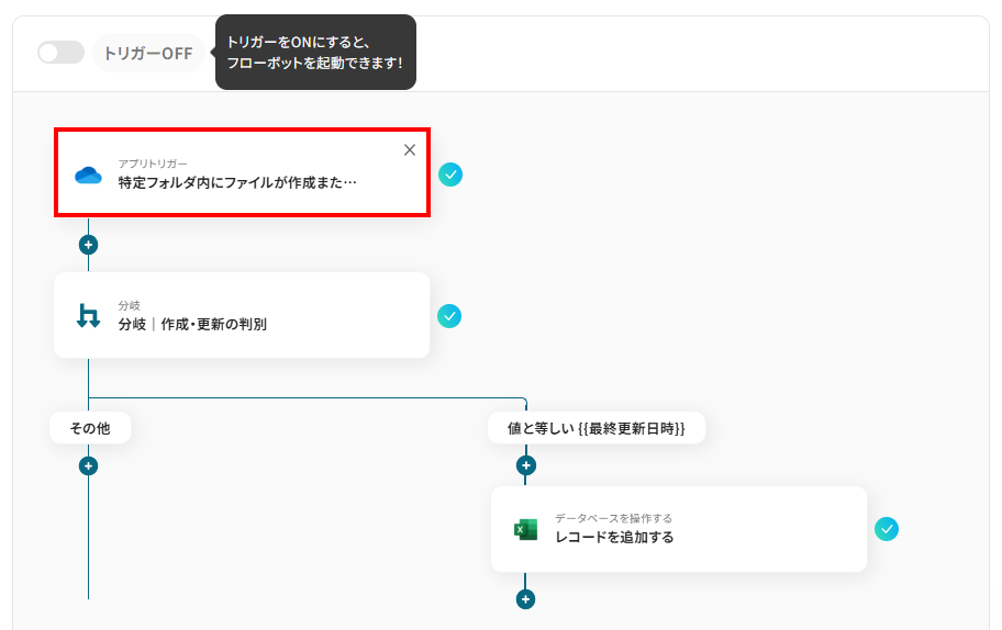 OneDrive上の既存ファイルが更新されたタイミングをトリガーとして、Microsoft Excelの対応するデータを自動で更新します。