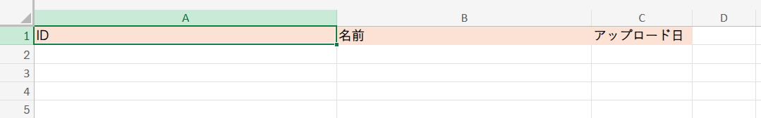 下記のようなMicrosoft Excelを作成したので、こちらにレコードを追加するように設定していきたいと思います。