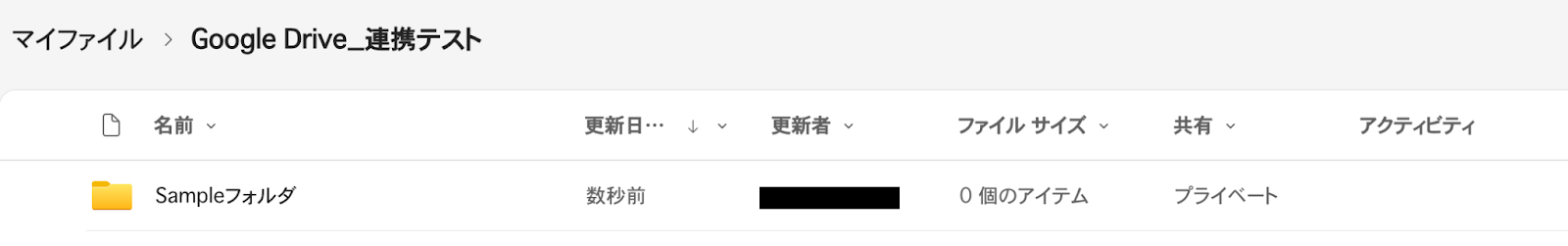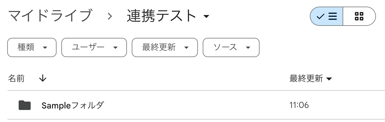 設定完了後は動作チェックのためにテストを行いますので、「フォルダID」に設定したフォルダ内に、テスト用のフォルダを作成してください。