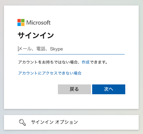 Microsoftのサインイン画面が表示されるので、Yoomと連携するアカウントのメールアドレスか電話番号(またはSkype)の情報を入力し、「次へ」を押してください。