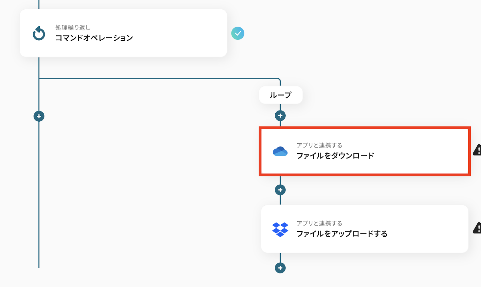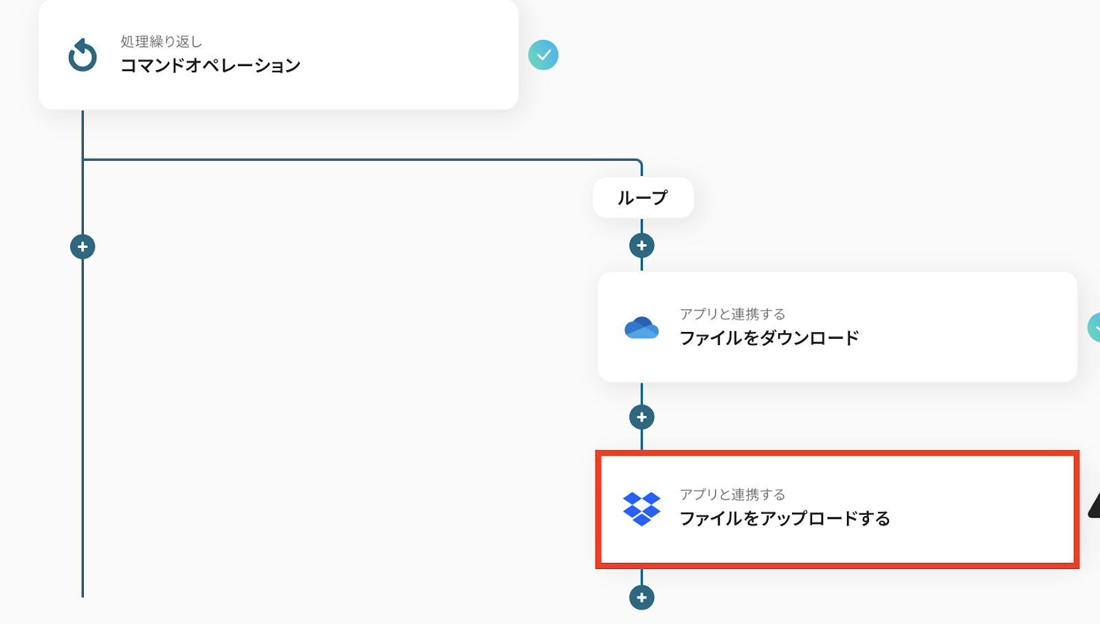 ※「同じ処理を繰り返す」オペレーション間の操作は、チームプラン・サクセスプランでのみ利用できる機能です。