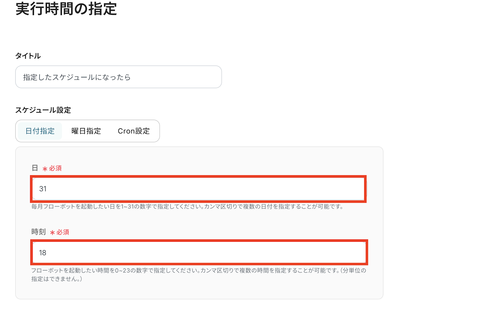 ※「Cronの設定」では、1日のうちに何度も起動したい場合や、曜日によって別の時間帯に起動したいなどの細かな設定が可能です。