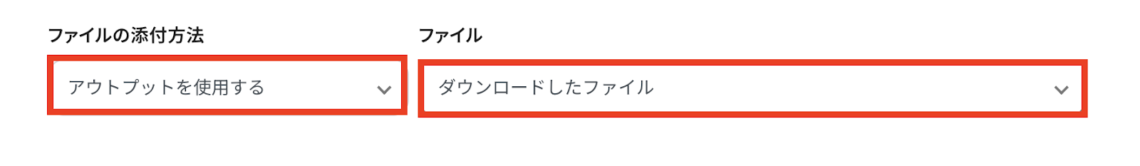 最後に「ファイルの添付方法」と「ファイル」の選択です。
