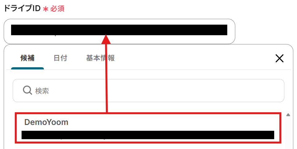 次に、「ドライブID」を候補から選択しましょう。