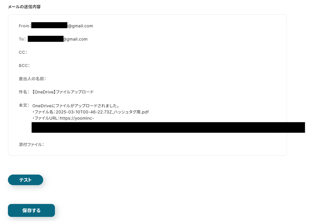 次に、OneDriveのファイルアップロードを通知したい宛先を「To」に入力しましょう。