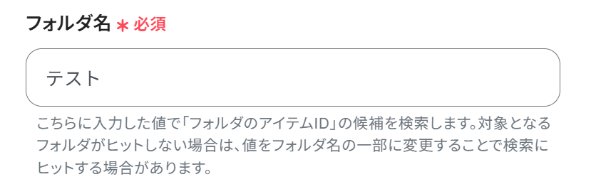 こちらは対象となるフォルダがヒットしない場合に使用するので、フォルダ名の一部を入力しましょう。