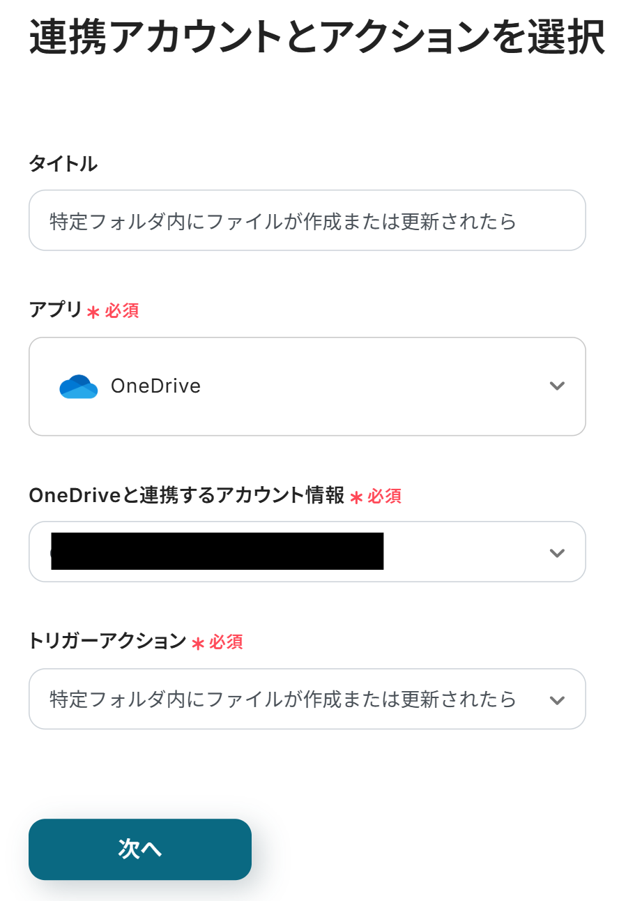 ステップ3:フローの起点となるOneDriveのトリガーを設定