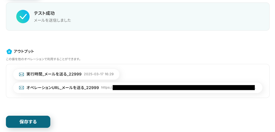 アウトプットはこの後の設定で活用するので、間違いがないか確認してください。