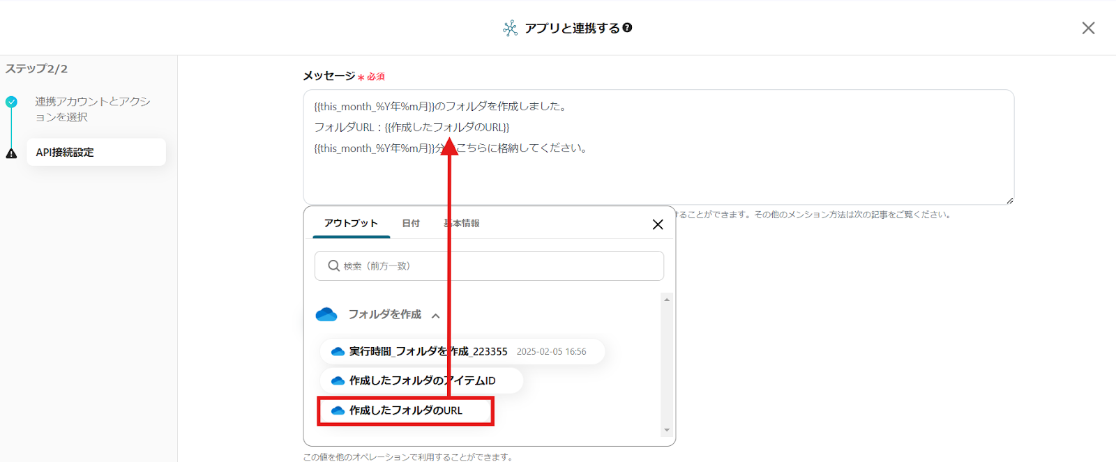 その後、SlackのAPIを用いて新規作成したフォルダデータを受け取り、特定のルームにメッセージを送信可能です。