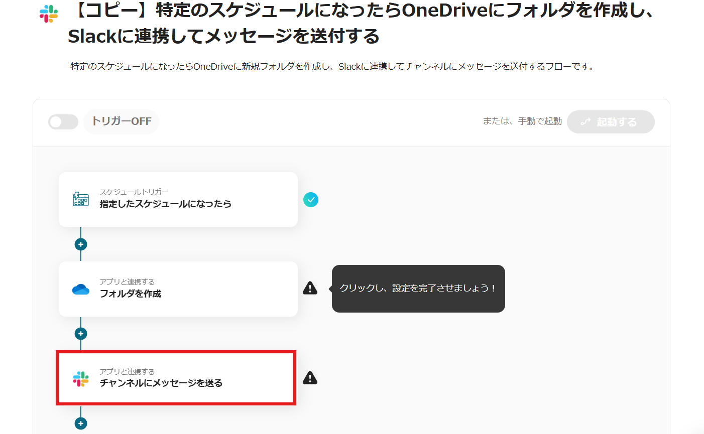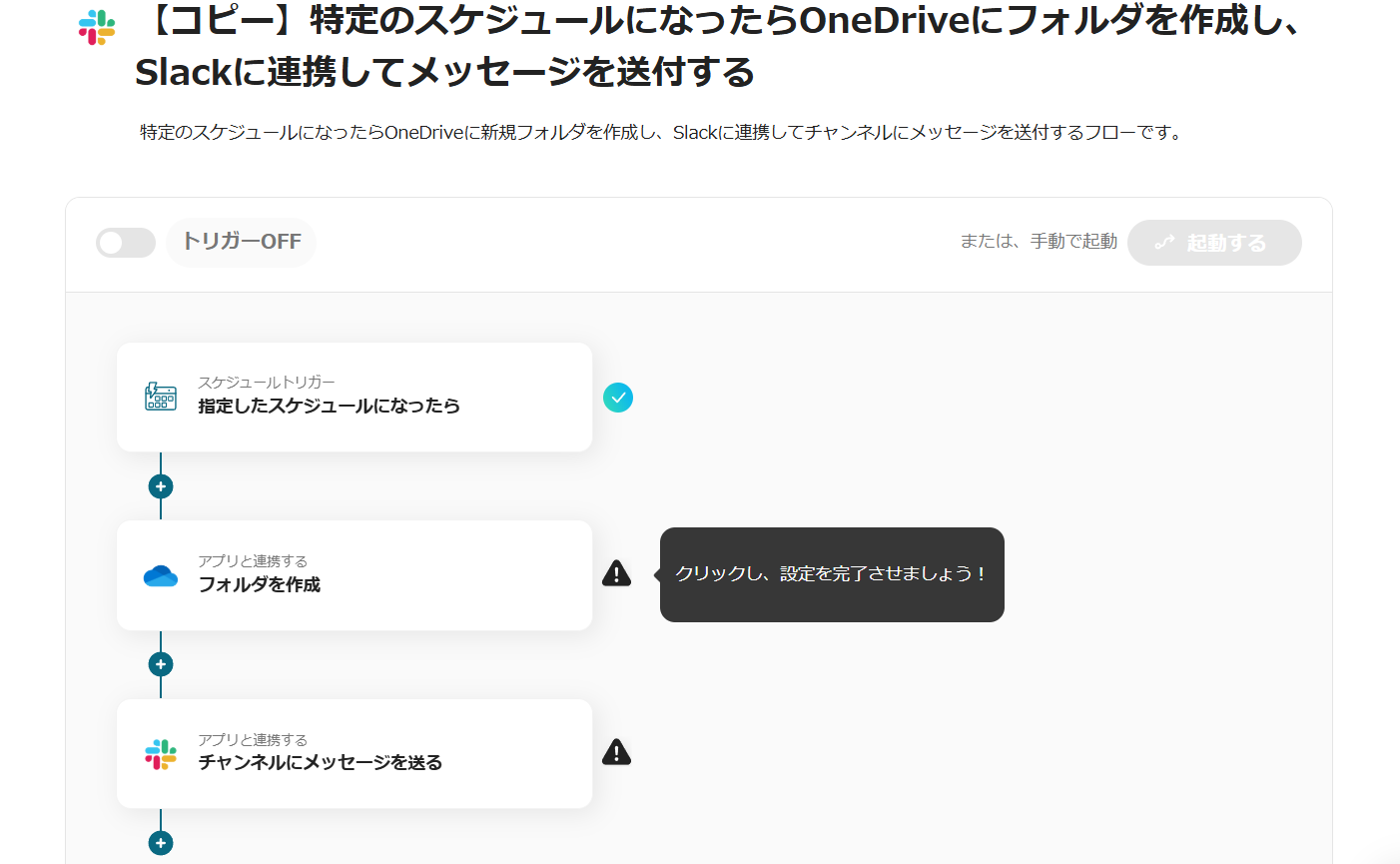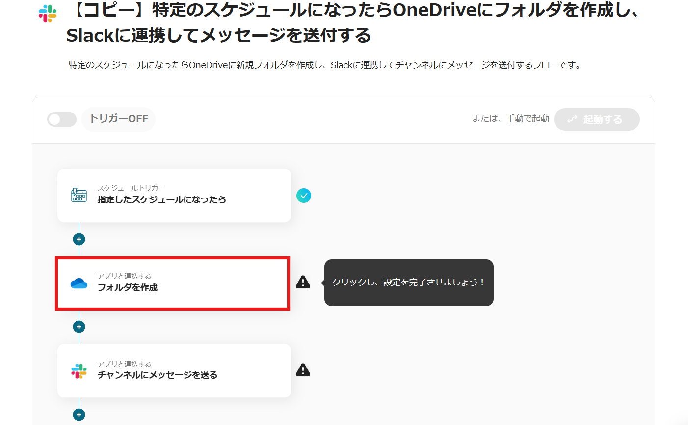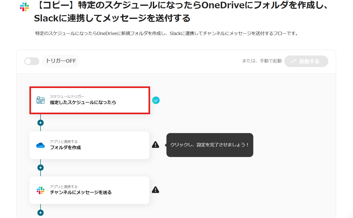 特定のスケジュールになったらOneDriveにフォルダを作成し、Slackに連携してメッセージを送付する
