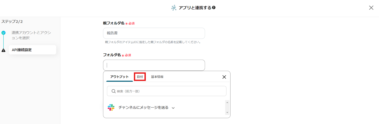 Slackの特定のチャンネルにメッセージを投稿することでフォルダ作成も可能です。