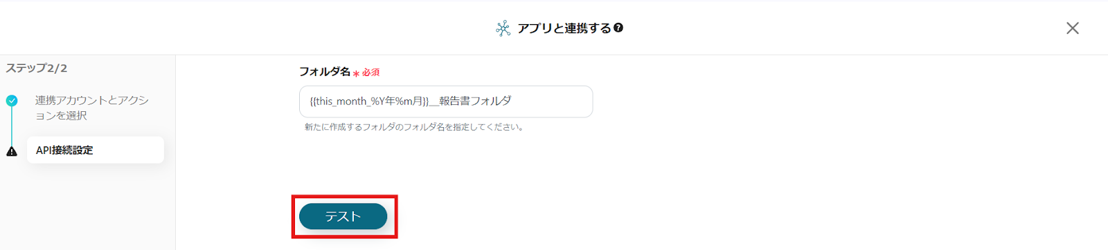 ここまで設定が完了したら、ページ下部にあるテストボタンを押しましょう。