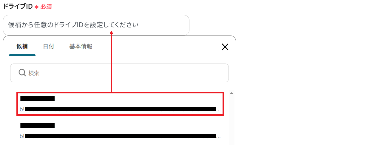 次にドライブIDを候補から選択してください。