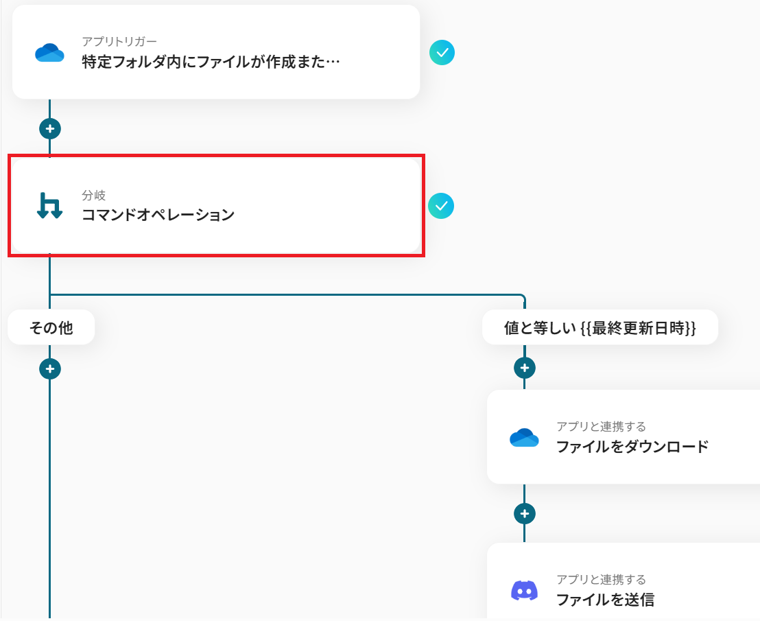 A:今回は分岐設定によって、ファイルが新規作成された場合のみDiscordで通知されるよう設定しています。そのため、フローの構成を変更しない限り更新時に通知されることはありませんのでご安心ください。