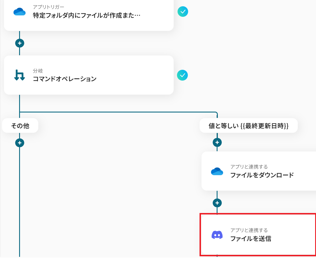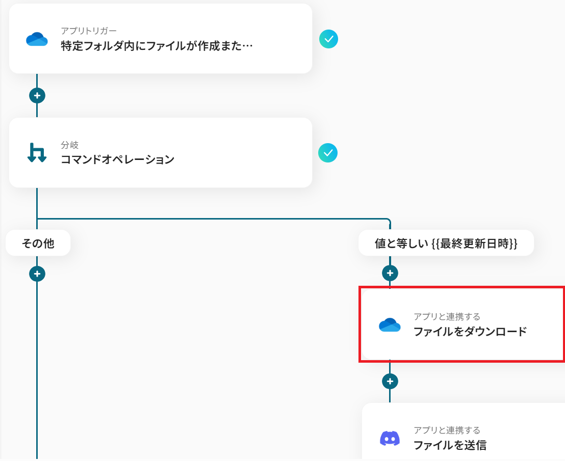 このワークフローを活用すれば、OneDriveにファイルが作成されると自動でDiscordにファイルが送信されるため、こうした連携の手間を解消し、スムーズな情報共有を実現します。