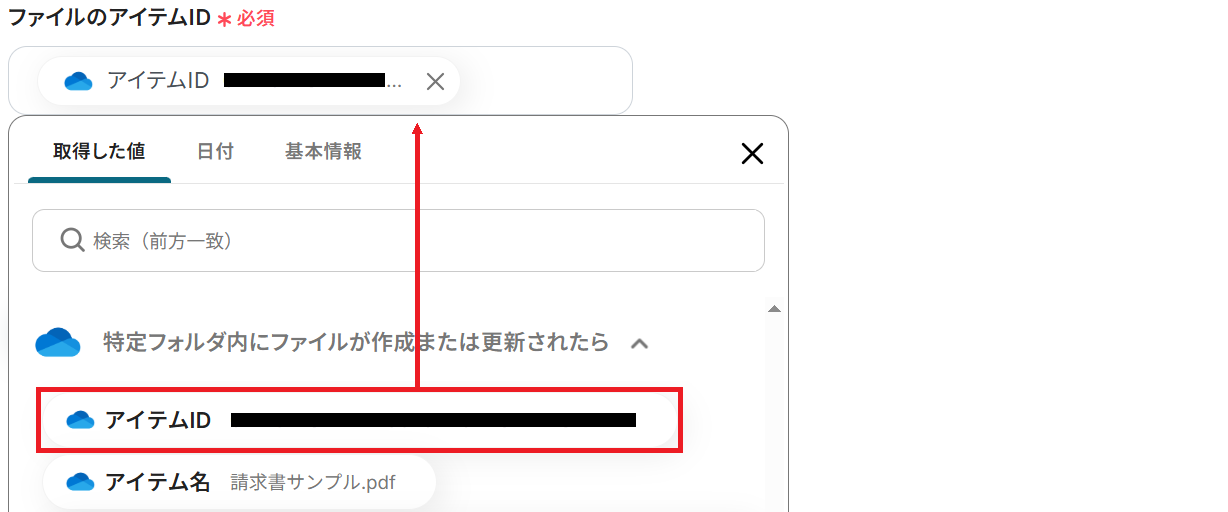 ファイルのアイテムIDにはOneDriveの「アイテムID」の取得した値が予め設定されているので、そのままテストしてください。