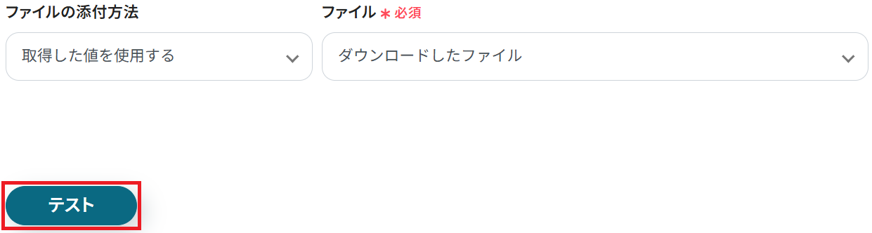 ファイルの添付方法・ファイルは予め設定されているので、そのままテストしてください。