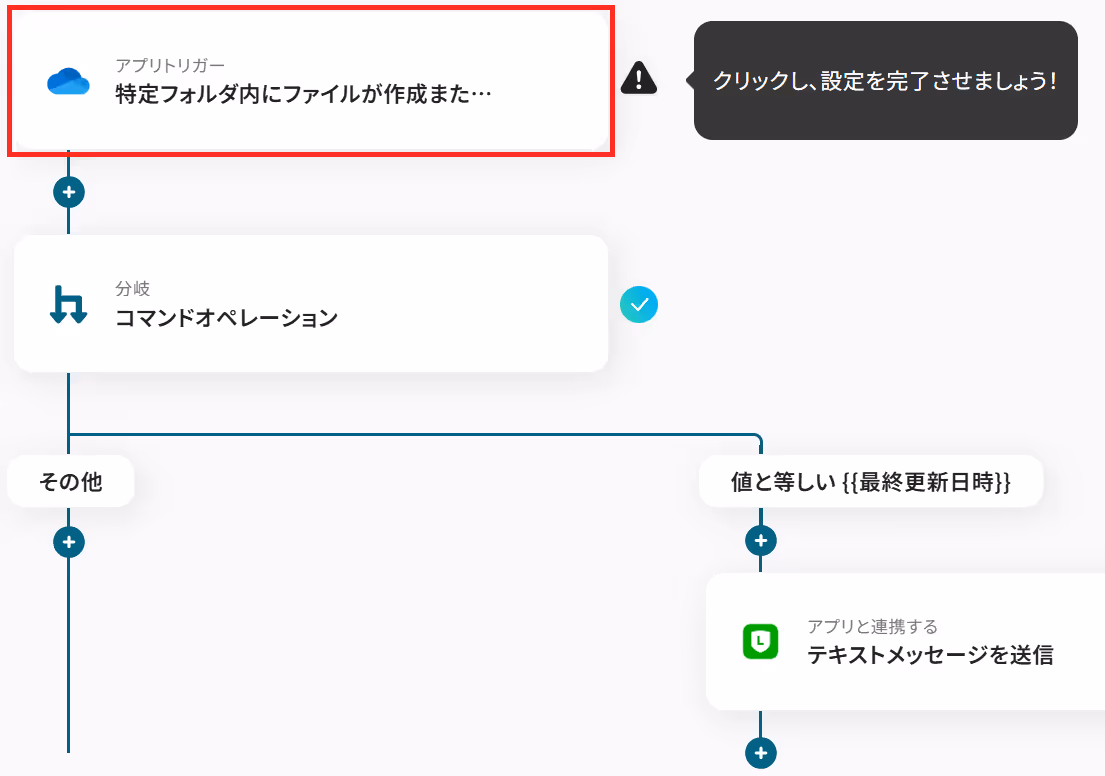 ※「分岐する」オペレーションは、ミニプラン以上でご利用いただけます。フリープランで利用するとエラーになってしまうのでご注意ください。