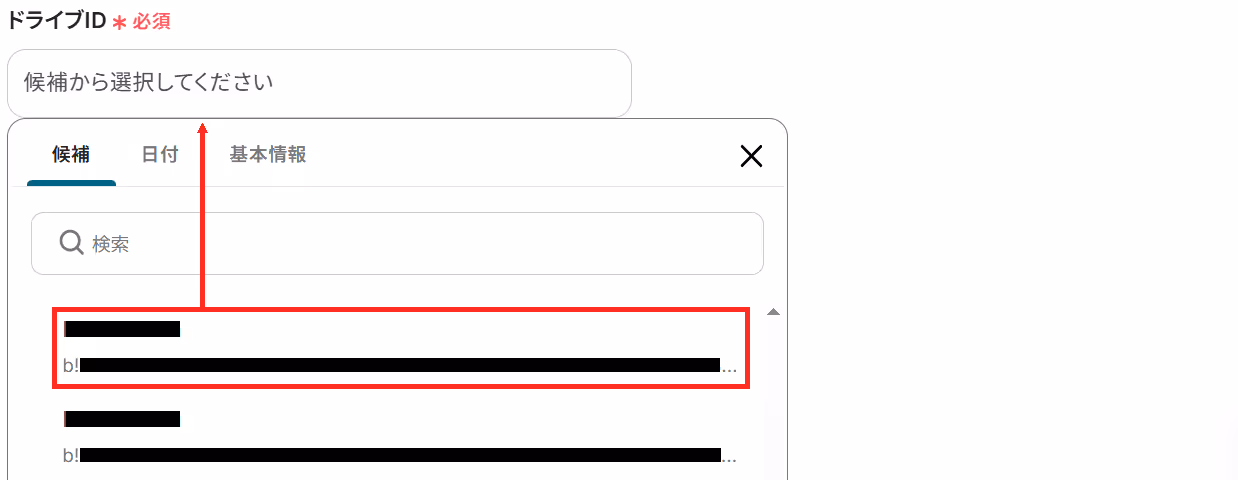 フォルダ名の欄に該当のキーワード(今回でいうと「経理」)を入力すると、フォルダIDの候補が絞られます。