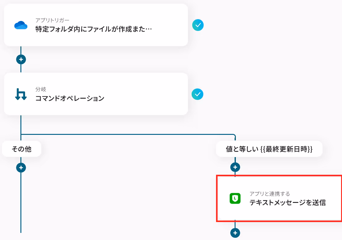 チーム内での情報共有を迅速にし、手動での通知漏れを防ぎます。</span>この連携は、特定の条件に応じて処理を実行する分岐処理を含むため、必要な情報だけを的確に共有できます。