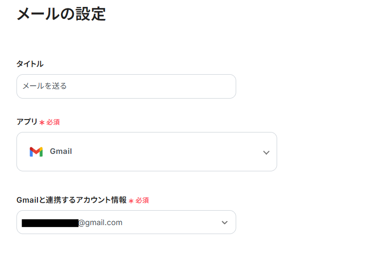 連携アカウントとアクションを選択する画面が表示されるので、今回連携するGmailのアカウントを確認し「次へ」をクリックします。