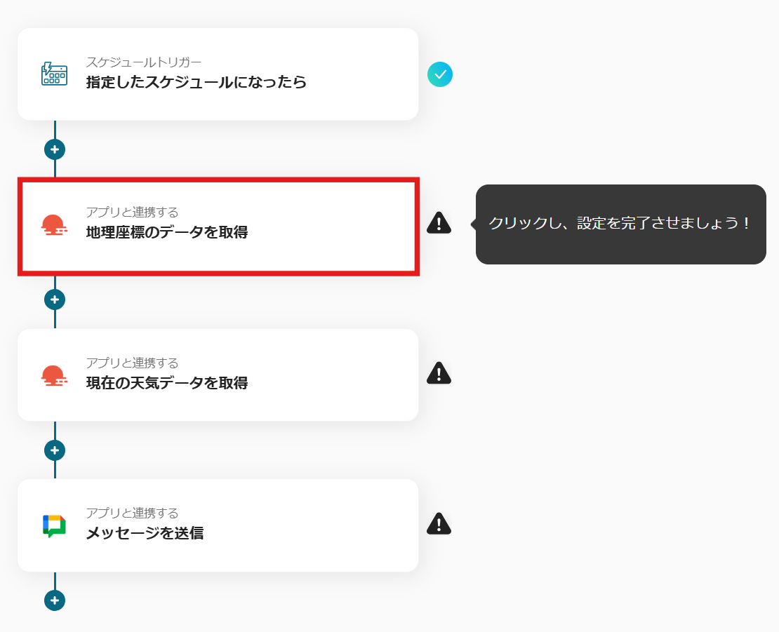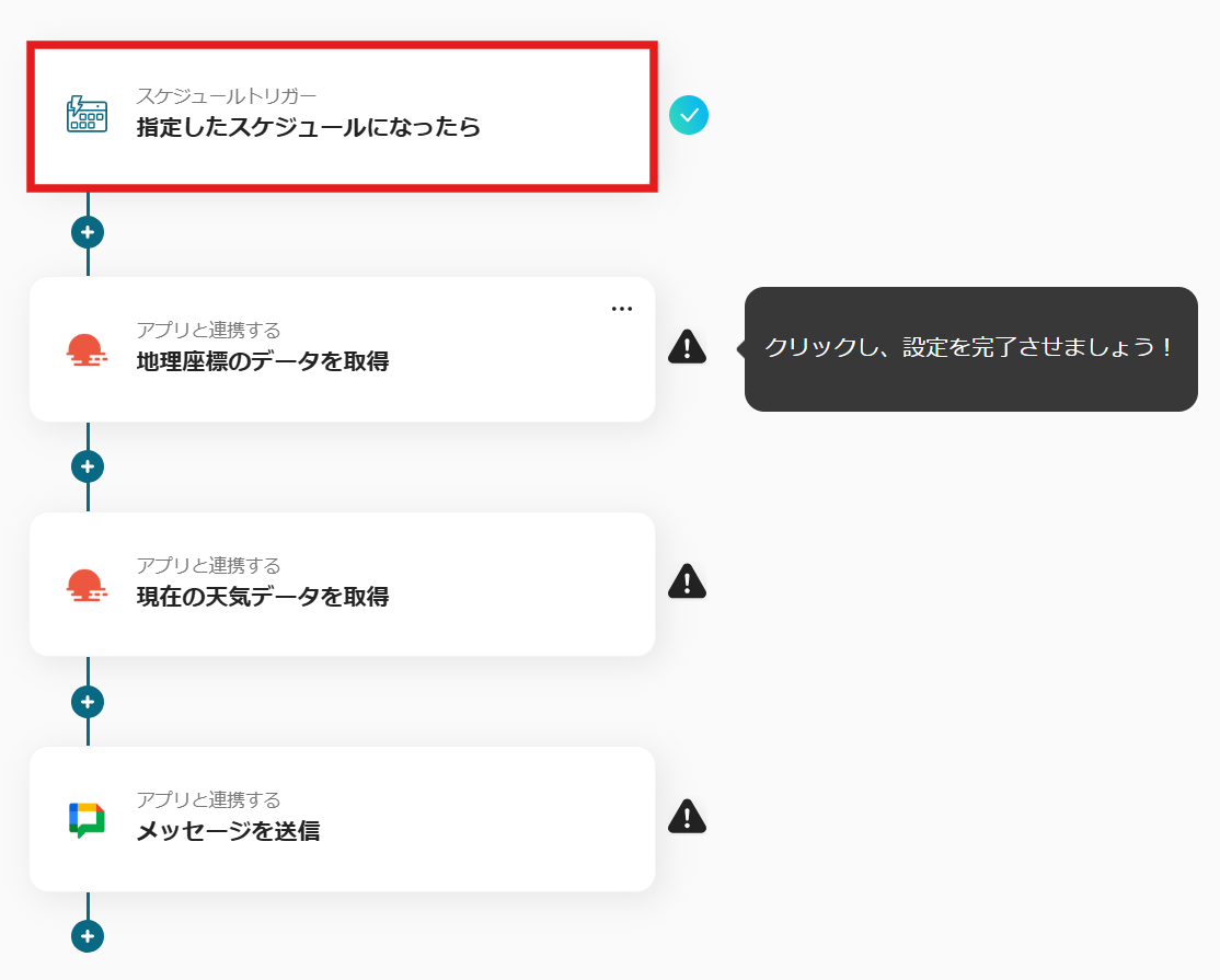 4.これで、【毎日OpenWeatherMapで天気予報を取得しGoogle Chatに通知する】というフローが完成しました。