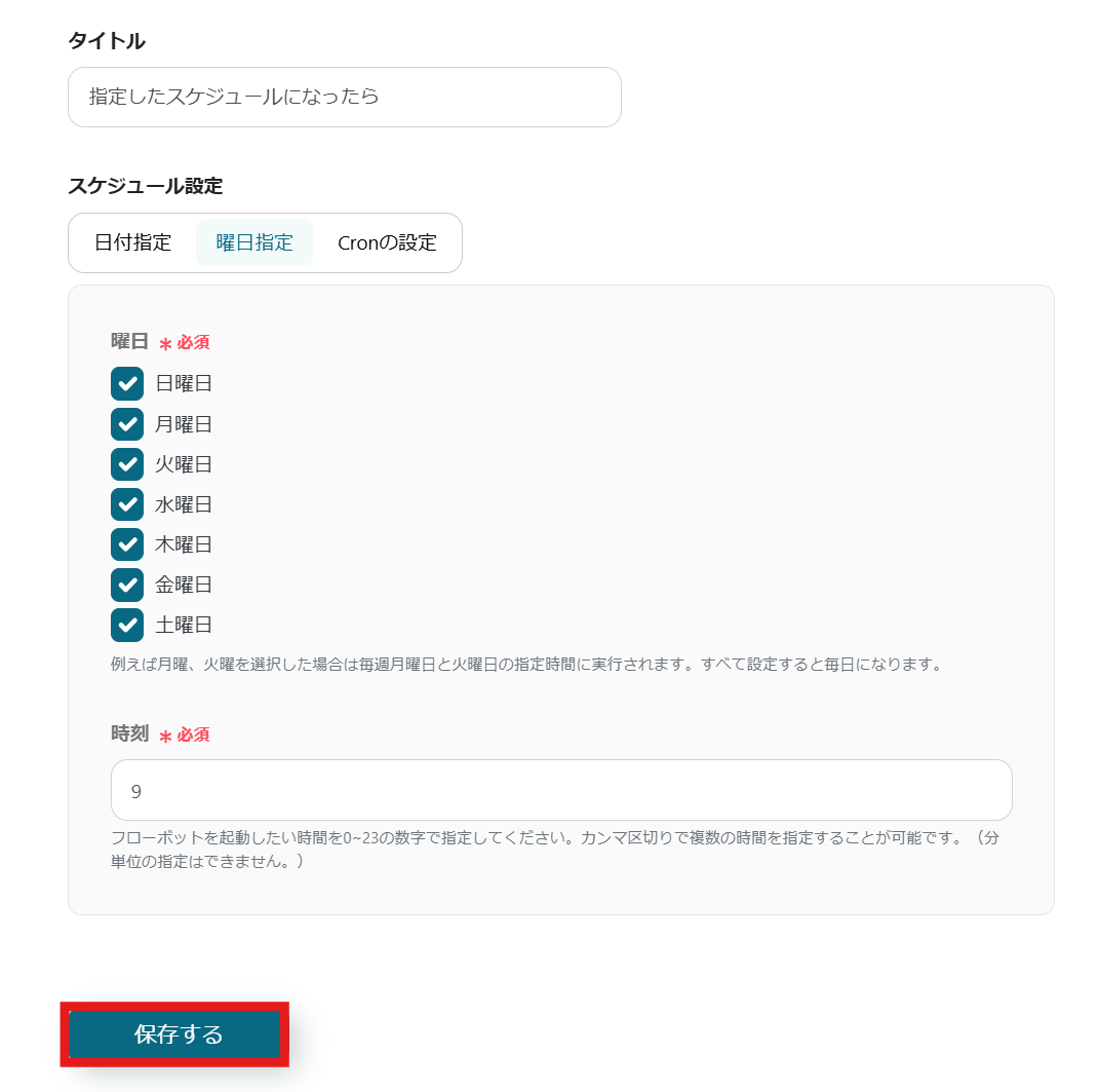 曜日と時刻は、実行したい時間を設定してください。