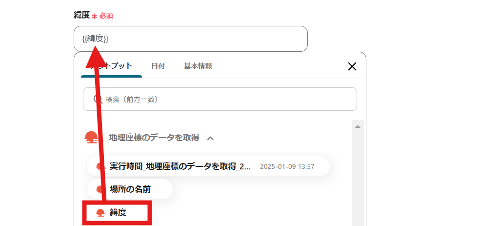 緯度と経度は必須項目なので、必ず入力してください。