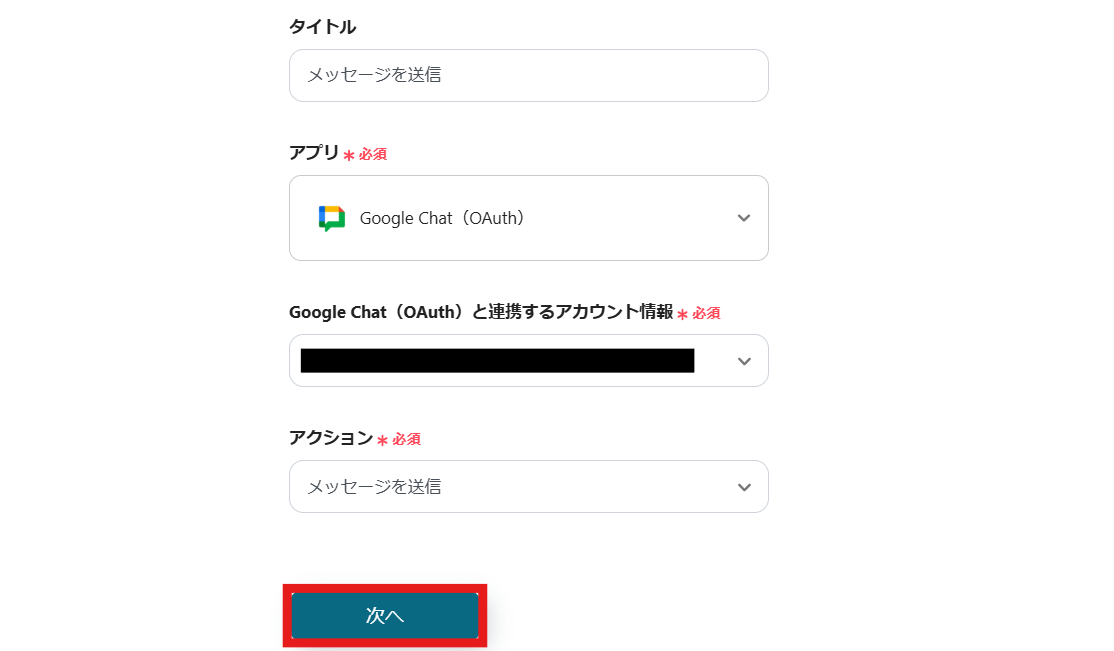 2.Google Chatと連携するアカウント情報を入力します。