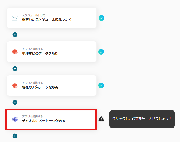 ・トリガーボタンをONにして、OpenWeatherMapとMicrosoft Teamsの連携動作を確認