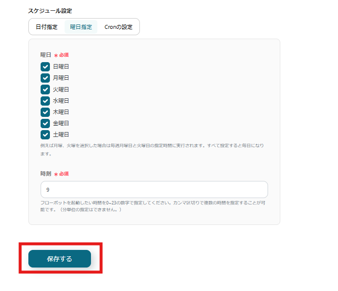 変更が必要であれば変更し、「保存する」をクリックしましょう。