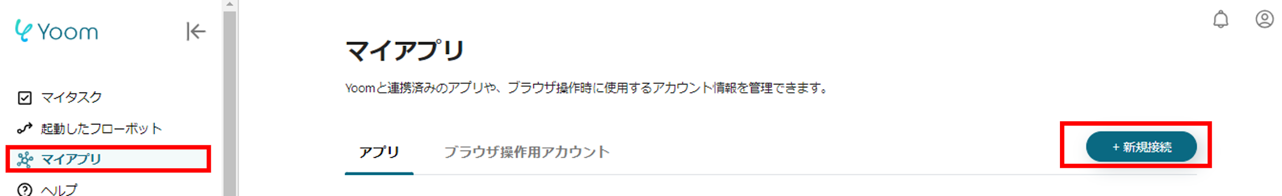 連携方法はYoomにログインし、画面左側にある「マイアプリ」をクリックします。